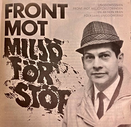Anders Ericsson of the Folksam Youth Committee, presenting the campaign Front mot miljöförstöringen (Front against environmental degradation). Folksam journal, no. 1, 1969, Author provided