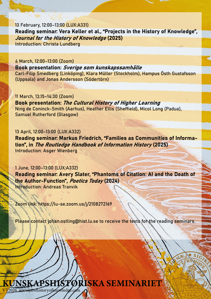 Please contact johan.ostling@hist.lu.se to receive the texts for the reading seminars.
